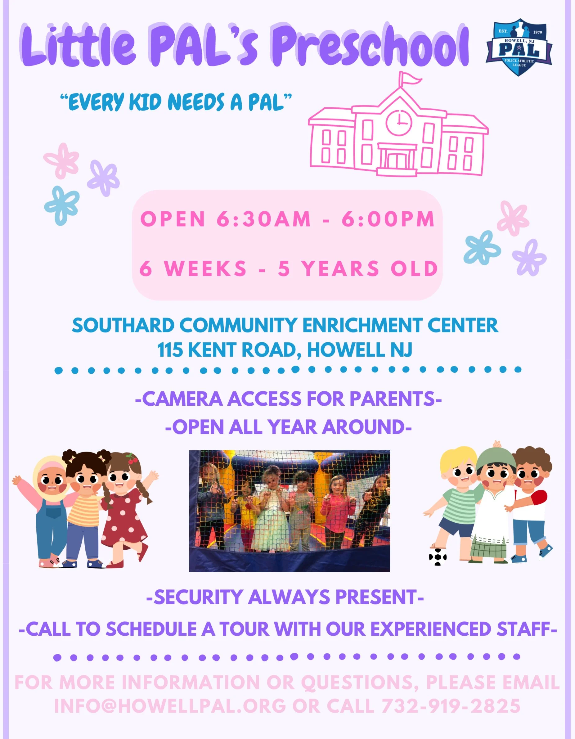 PAL works cooperatively with the Howell Township School District to incorporate approved methods and programs for the benefit of your children and to ease the transition from preschool to kindergarten.